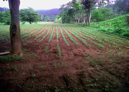 July 7, 2011 - The corn has germinated and looks as if it is off to a good start. Thankfully, it has been raining steadily since we planted. Last year's corn crop was such a success, that it almost seems greedy to hope for more. This year we have doubled the amount of corn that is planted. There have been fifteen men working hard beneath the relentless tropical sun to ready additional areas for planting. They have been moving rocks, pulling stumps, spraying weeds and wielding their machetes for nearly three weeks. The men are glad to have work and we are most grateful for their service. Already the men can be heard saying about the cornfield, "se ve chula" which is hard to translate but essentially means it looks "really, really good". In the midst of so much hunger and difficulty, it's good to have hope as one looks out over this cornfield and imagines the possibilities. For more pictures of our progress go to: http://www.facebook.com/media/set/?set=a.231758046846657.57529.182387368450392