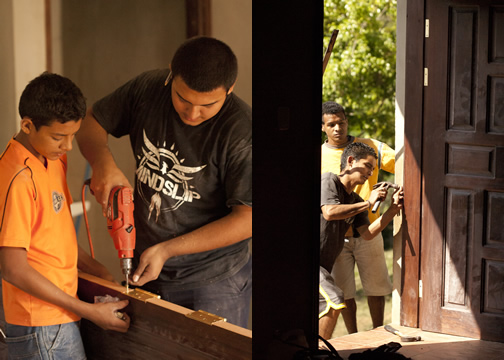 November 8, 2011 - Another giant leap toward finishing the new school building! The carpenters were here today in Buenos Aires to install four new doors for the school. There are two external doors (one for each classroom) and two doors for the bathrooms. Each classroom has its own bathroom with running water. Never before have the children had indoor plumbing at school. There is an outhouse, but now both teachers and students alike will not have to leave the building when nature calls. Tomorrow, the Midlife Men on a Mission from Fairfax Presbyterian will be at the mission for a tour. They will also be painting the new school building and installing lights. Finally, the children of Buenos Aires will have a modern building with enough space to learn.