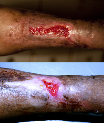 April 13, 2012 - Many women in Honduras suffer from leg ulcers because of venous insufficiency. This woman had lived with a festering ulcer for more than ten years. She found her way to the clinic because she had been told we had "new ways" of treating her problem. When she first came to the clinic, her ulcer covered more than one third of her leg and was filled with infection. It was also very painful. She explained she could no longer take in washing to support her family because she was unable to stand for any period of time. Thankfully, we were able to treat her infection and begin to encourage her own tissues to regenerate. Now, nine months later this wound is nearly healed. Normally, a wound this size would have required the use of a skin graft once the infection was resolved. Thankfully, this woman's own body has been able to slowly but surely regenerate the skin cells needed to finally cover what was once a gaping wound. The three main principles of wound care worked well in this case which are: keep the wound free of infection, free of swelling and keep the wound bed moist not dry to promote cell growth. We are so pleased to be able to provide these services to our fellow man and thank God for the privilege of seeing the fruits of our labors.